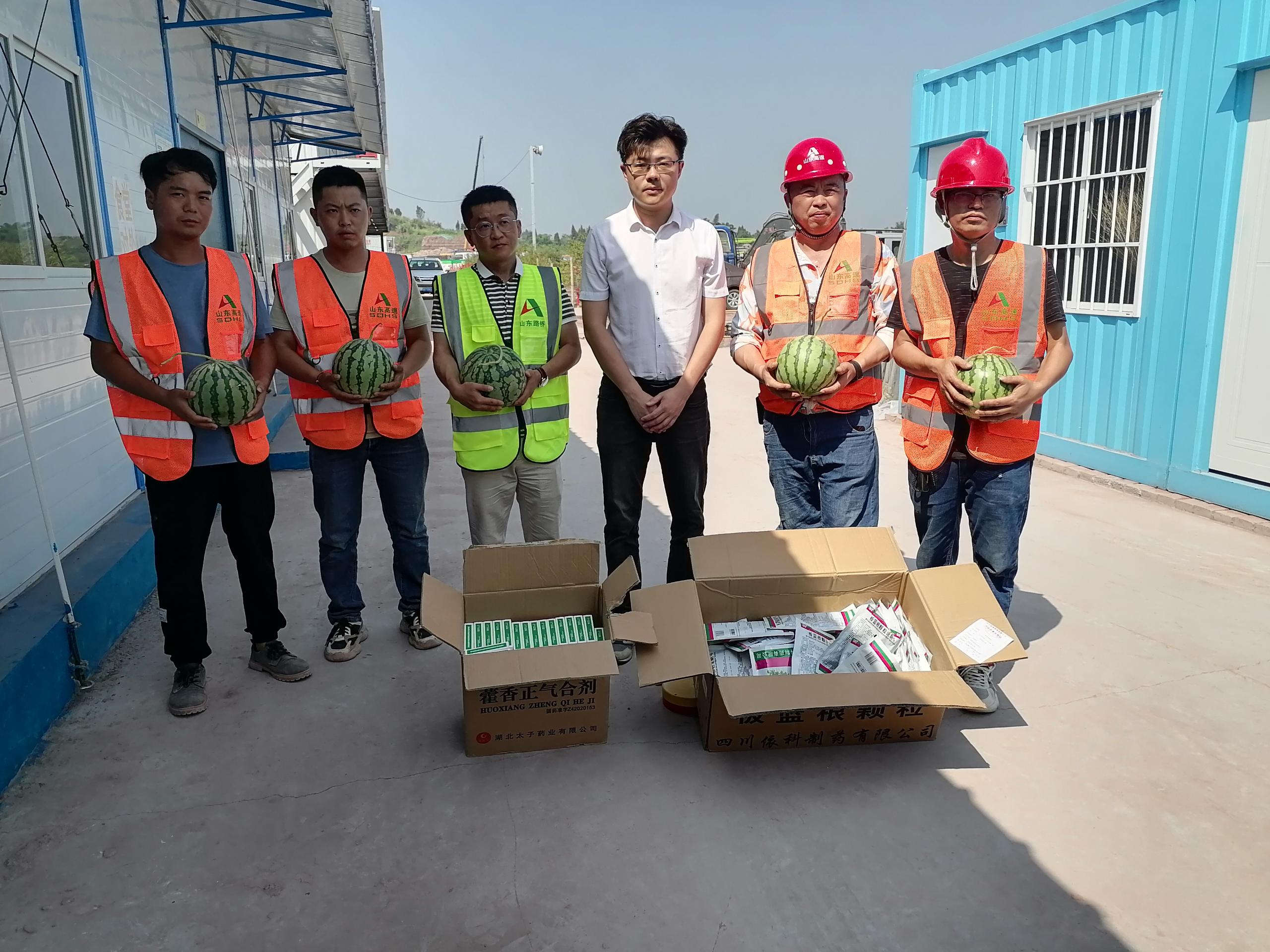 七月的內江,烈日灼灼,酷暑難耐,為深入貫徹“以人為本”的企業(yè)發(fā)展理念,做好高溫天氣防暑降溫工作2022年78日,受綠建杭蕭總經理古敏同志委托,綠建杭蕭工會主席、工程管理副總經理周士棠同志組織開展“夏送清涼”活動,帶隊前往四個項目施工地及生產一線現場慰問職工,為戰(zhàn)斗在高溫工作崗位上員工送去西瓜、藿香正氣液等清涼降溫的防暑物資。